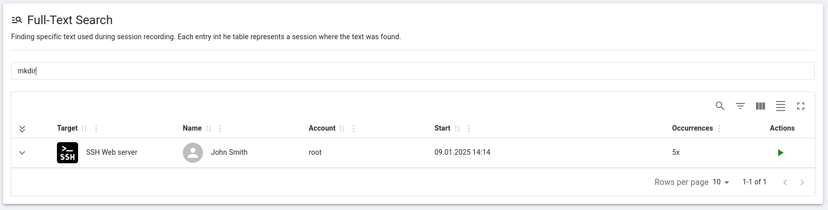 You can search for any text that was typed or displayed during your past PAM sessions. Clipboard-related context is also included in full-text search results.