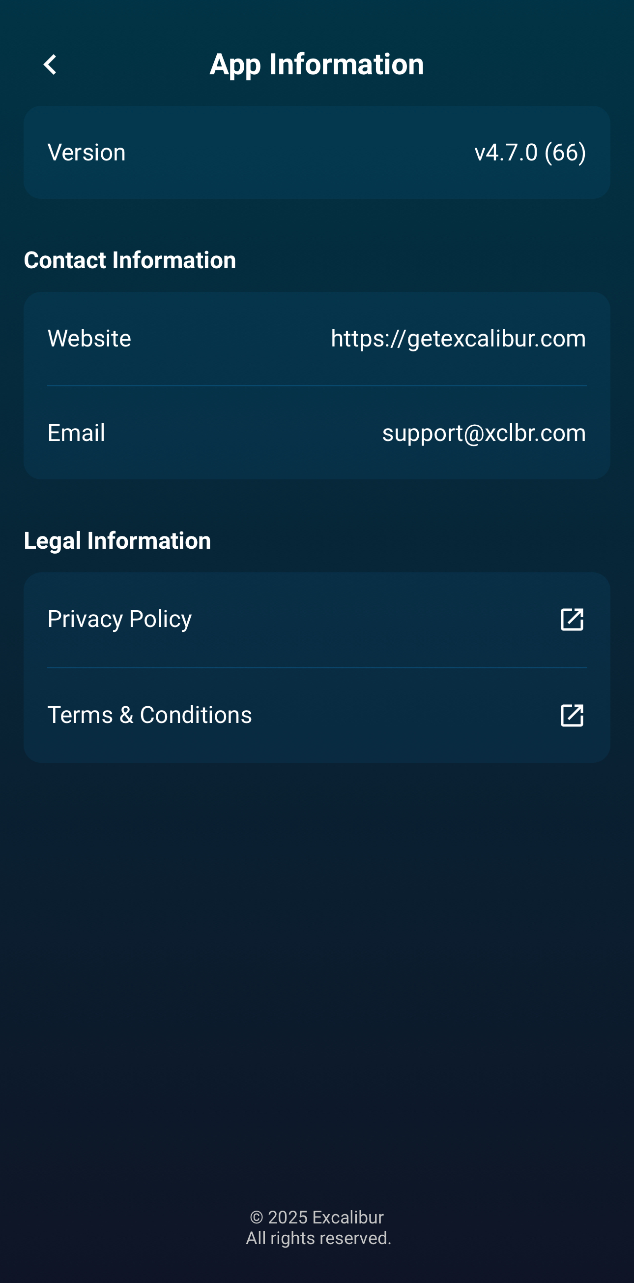 Figure 16. Excalibur mobile app company details