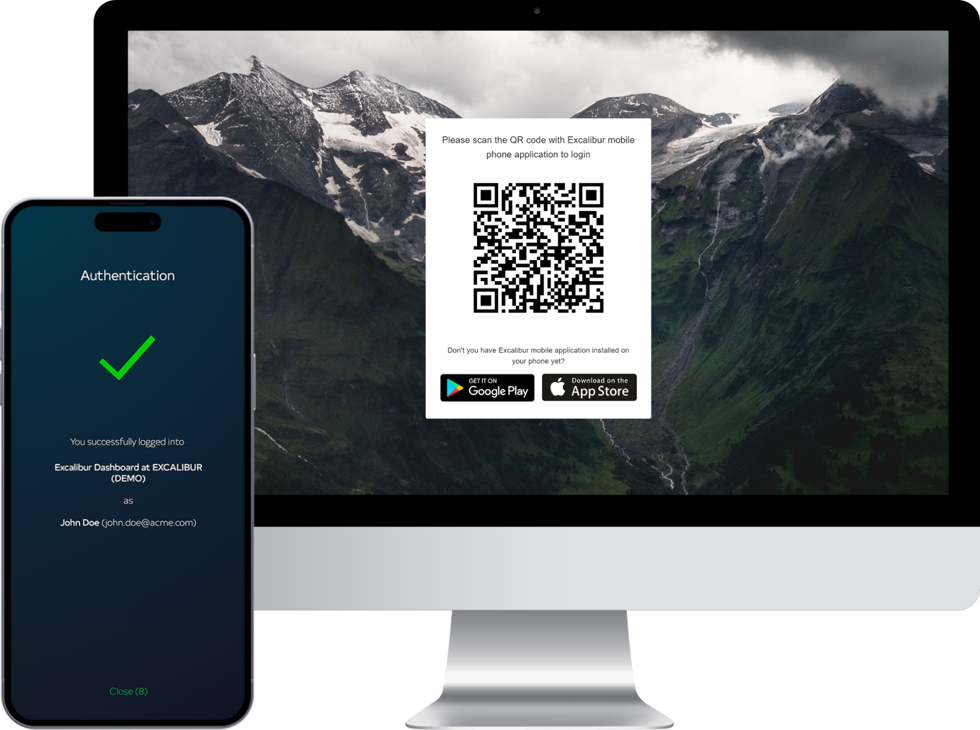 As a User, you will use the Excalibur system to securely log in and access company resources, such as PC clients, VPNs, and web applications. You will use the Excalibur mobile app as your personal security token to access the Dashboard and manage your sessions.