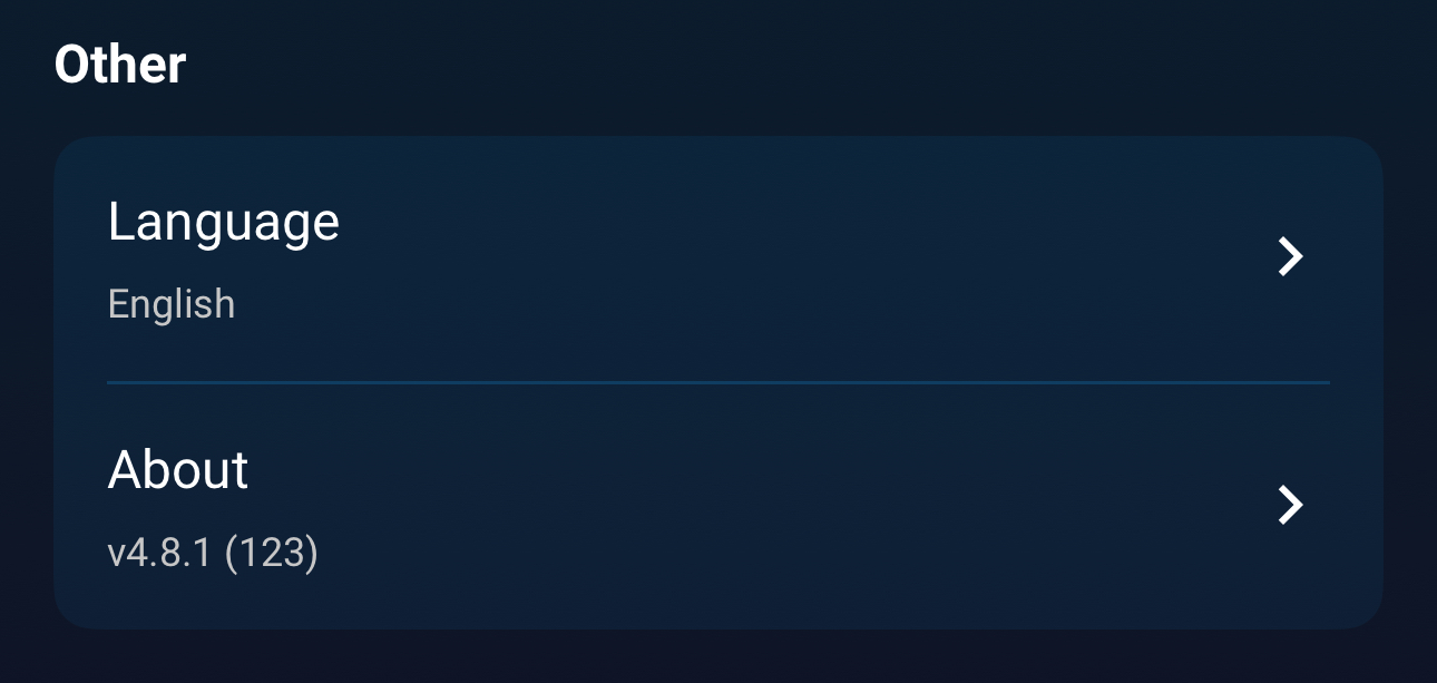 To access the settings menu, tap the gear icon in the bottom-right corner. This menu allows you to manage your accounts and app preferences: