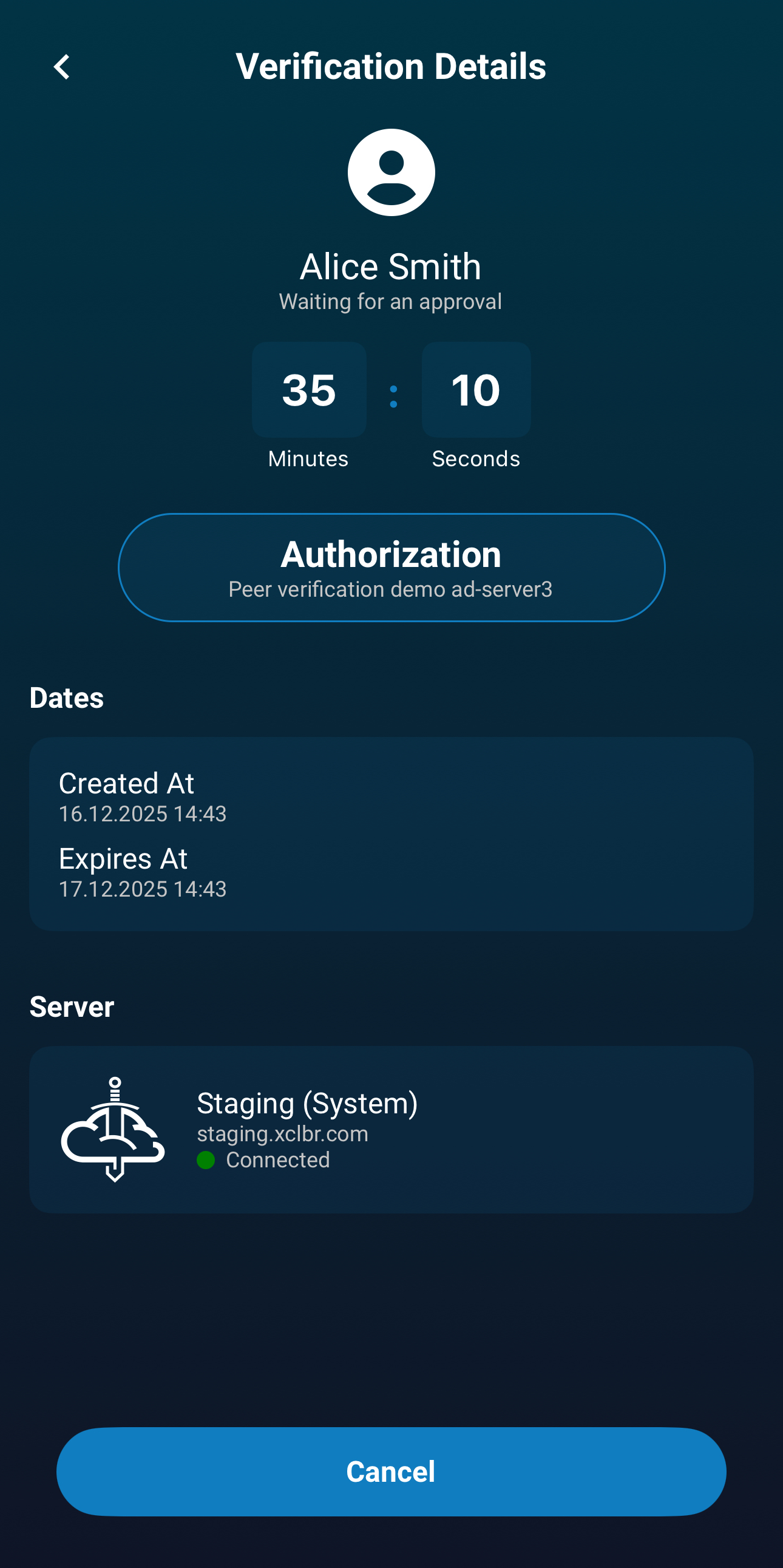 Approvers must verify their identity using PIN, biometrics, location, and secure digital signatures before approving or rejecting verification requests. This ensures that only authorized users can approve requests and that all actions are fully auditable.