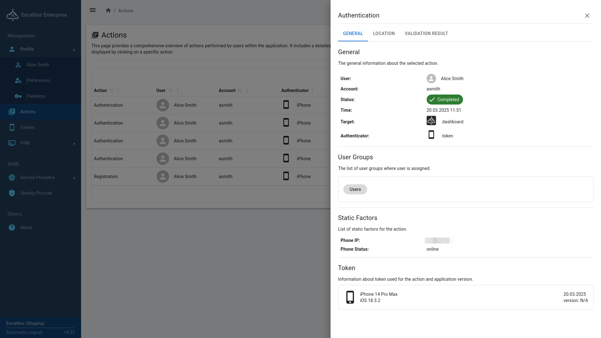 As a User, you will use the Excalibur system to securely log in and access company resources, such as PC clients, VPNs, and web applications. You will use the Excalibur mobile app as your personal security token to access the Dashboard and manage your sessions.